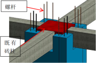 装配式混凝土构件加固技术,通过预制混凝土板包裹既有砖柱,采用植筋、灌浆套筒技术实现新老结构一体化,等效于现浇增大截面加固。先在工厂预制带预留箍筋和套筒的混凝土板,施工前提前凿出上层梁及楼板的对应洞口并处理原砖柱表面,完成基础植筋后,将预制板吊装就位并进行座浆处理;随后将套筒与预留插筋精准连接,通过斜杆支撑固定预制板,再进行沉头螺栓植筋加固,焊接预留箍筋形成闭合环箍,最后封堵孔洞及后浇区,按此流程重复施工直至各楼层全部完成。
